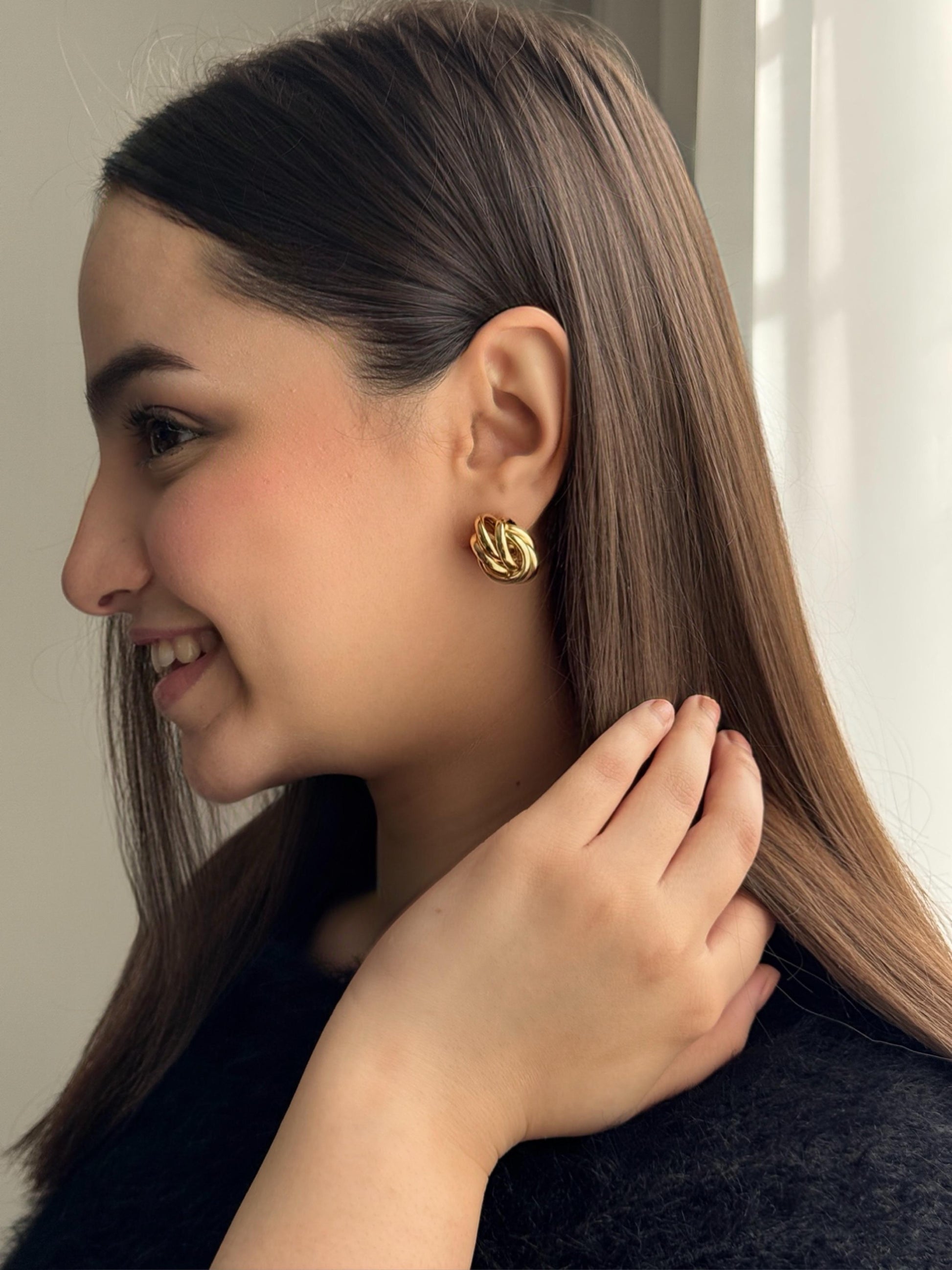 Elevate your jewelry collection with the Classic Knot Earrings in Gold. Featuring a beautifully interwoven knot design and a polished golden finish, these earrings bring timeless elegance and subtle sophistication to any ensemble.