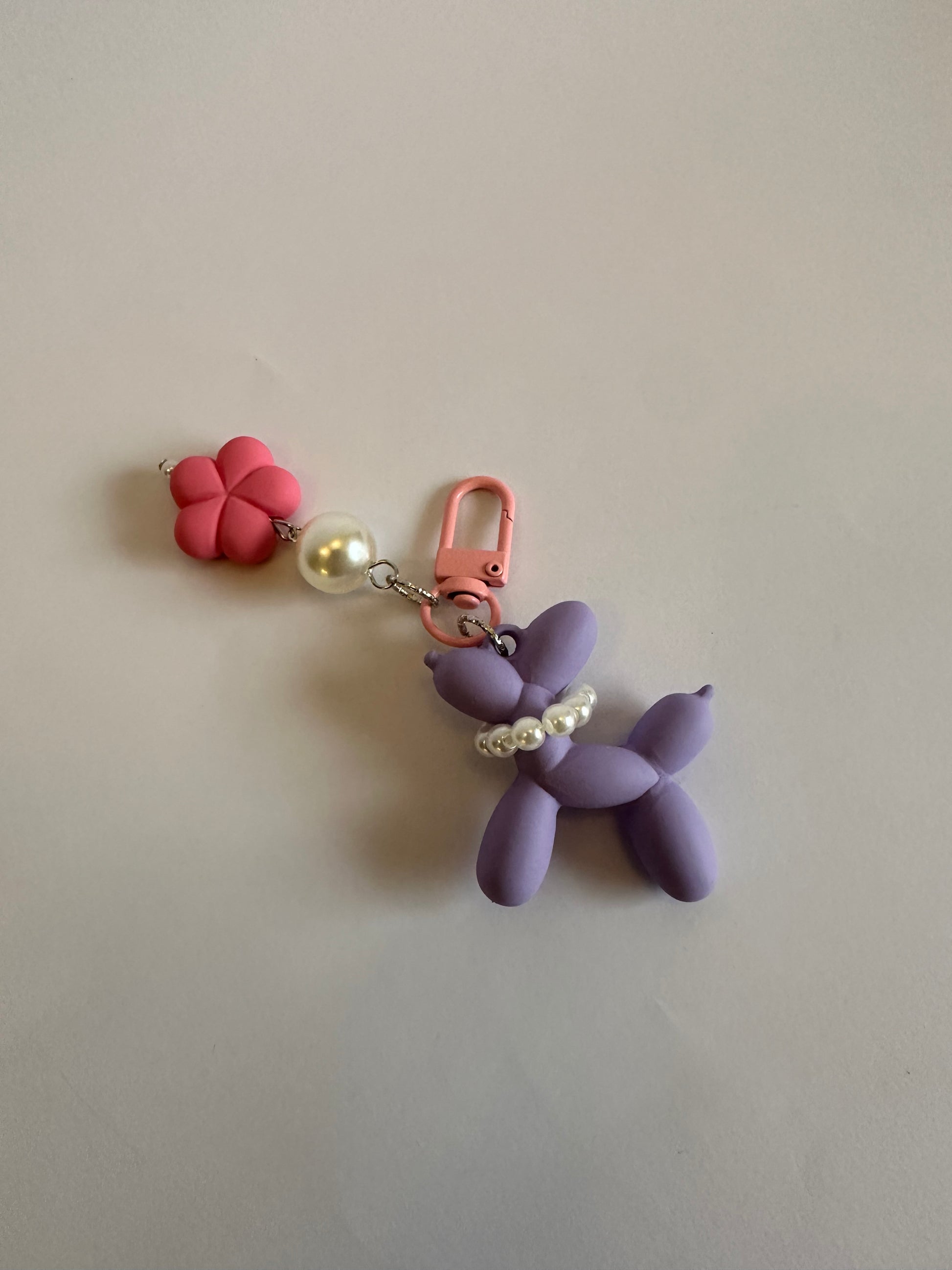 Brighten up your accessories with the adorable Lilac Balloon Dog Keychain. Featuring a soft pastel aesthetic and delicate pearl details, this keychain is perfect for adding a playful yet elegant touch to your style.