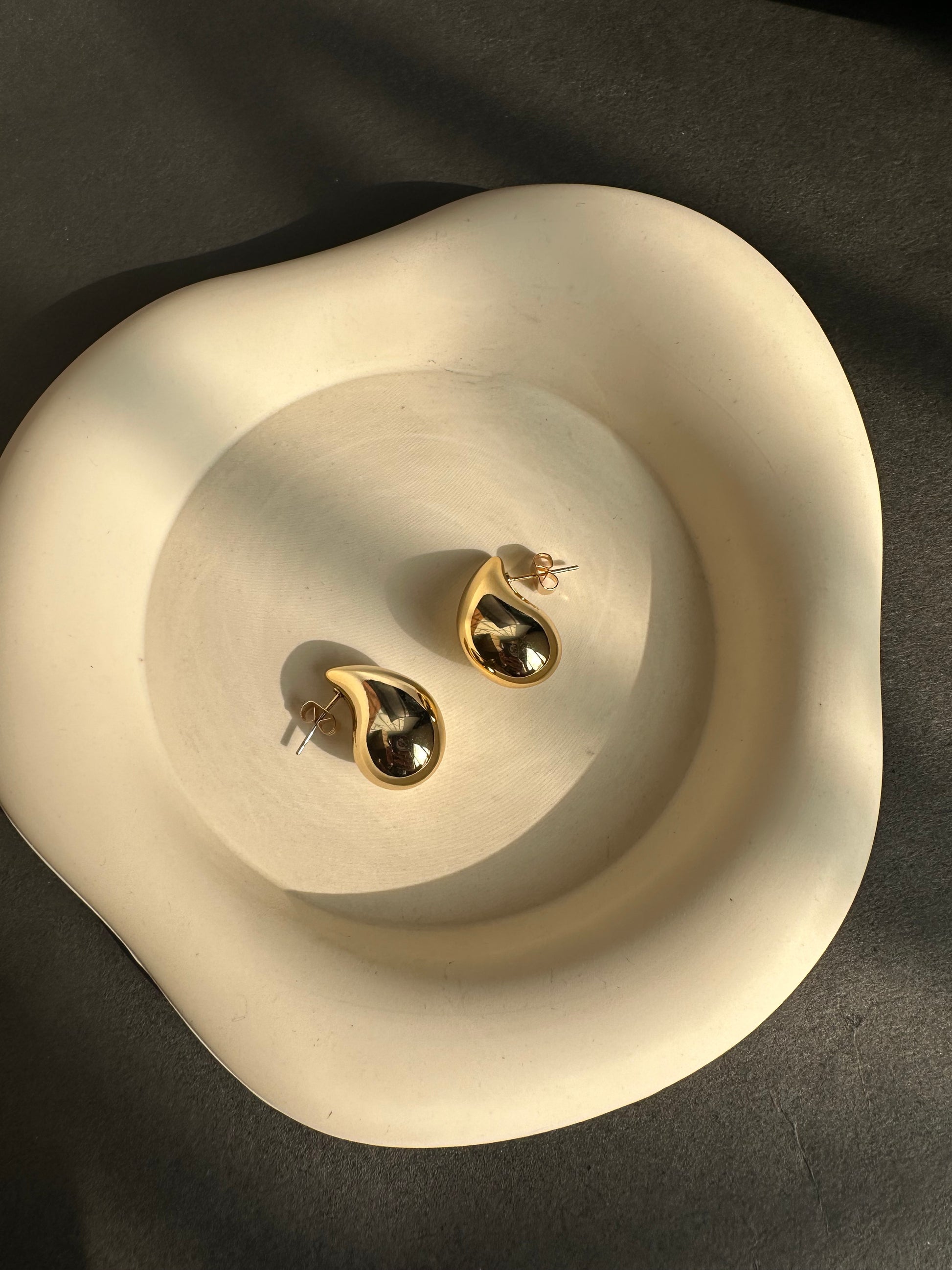 Add sculptural sophistication to your jewelry collection with the Molten Teardrop Earrings in Gold. Inspired by fluid forms and modern minimalism, these earrings offer a bold yet refined silhouette that catches the light with every movement perfect for effortless elegance from day to night.