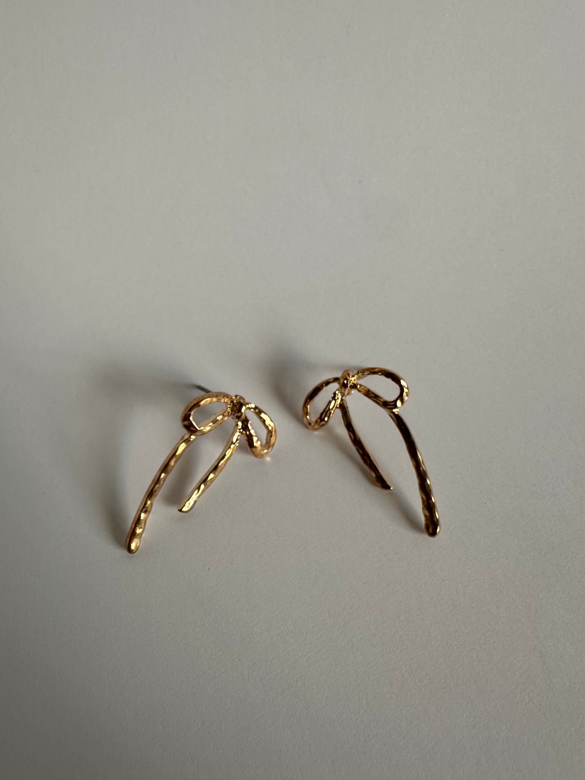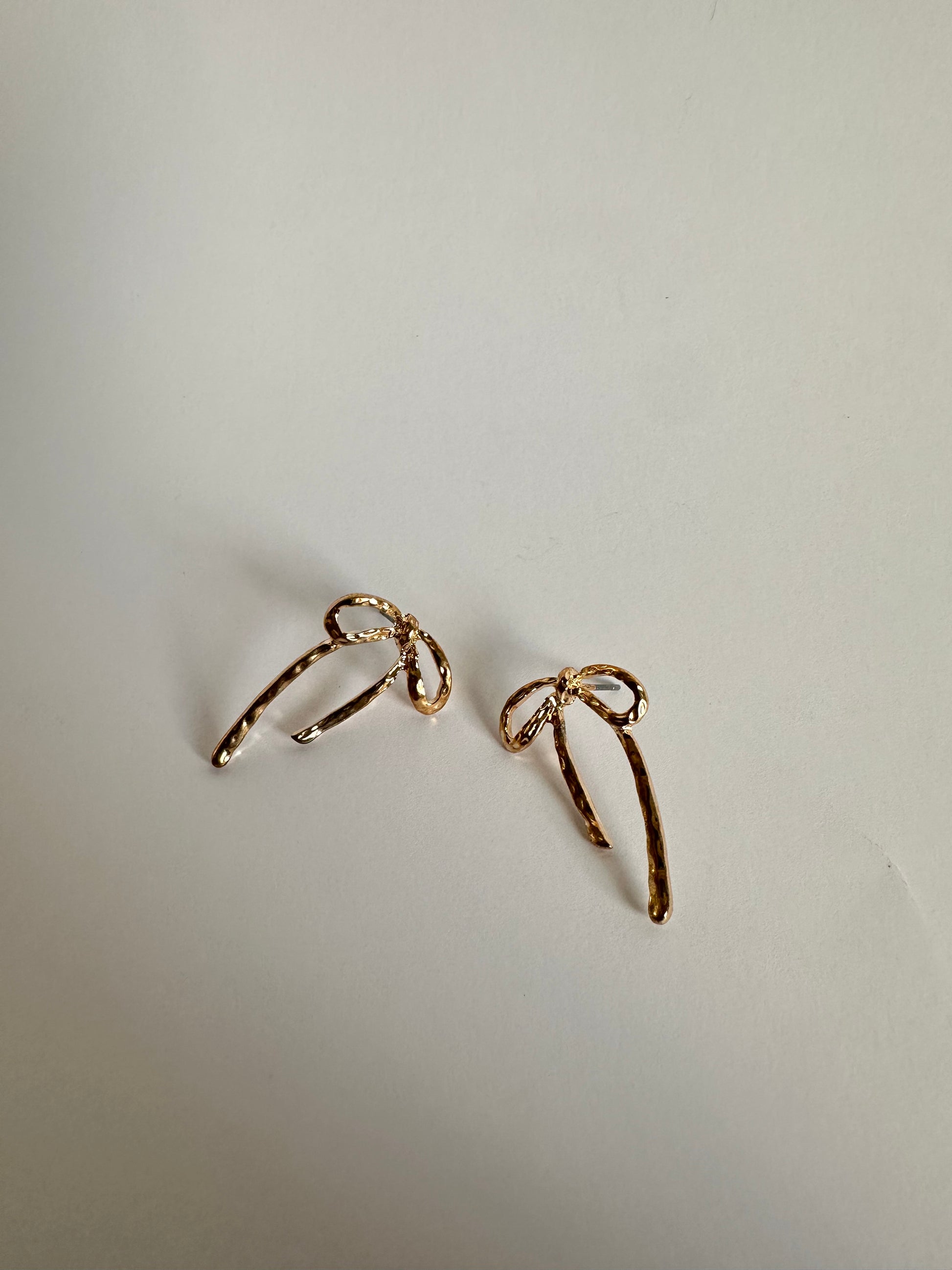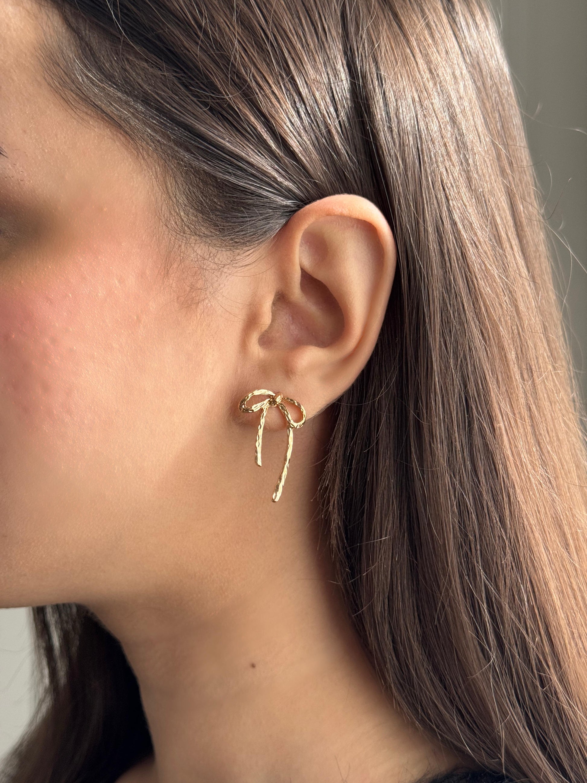 Add a touch of delicate elegance to your jewelry collection with the Textured Gold Ribbon Earrings. Designed with a charming bow shape and a textured finish, these earrings bring a unique and feminine touch to any look.